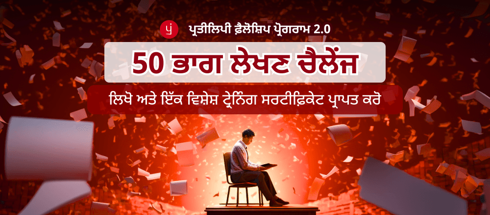 ਇਹ ਲੇਖਣ ਚੈਲੇਂਜ ਮੁੱਖ ਤੌਰ 'ਤੇ ਉਨ੍ਹਾਂ ਲੇਖਕਾਂ ਲਈ ਹੈ ਜਿਨ੍ਹਾਂ ਨੇ ਉਪਰੋਕਤ ਪ੍ਰੋਗਰਾਮ ਵਿੱਚ ਰਜਿਸਟਰ ਕੀਤਾ ਹੈ ਅਤੇ ਲੜੀਵਾਰ ਲਿਖਣ ਦੀ ਟ੍ਰੇਨਿੰਗ ਪ੍ਰਾਪਤ ਕੀਤੀ ਹੈ। ਪਰ ਜੇਕਰ ਤੁਸੀਂ ਪ੍ਰਤੀਲਿਪੀ ਫ਼ੈਲੋਸ਼ਿਪ ਪ੍ਰੋਗਰਾਮ ਲਈ ਰਜਿਸਟਰ ਨਹੀਂ ਕੀਤਾ ਹੈ, ਤਾਂ ਤੁਸੀਂ ਸਾਡੀ ਅਧਿਐਨ ਸਮੱਗਰੀ ਤੋਂ ਸਿੱਖ ਕੇ ਵੀ ਭਾਗ ਲੈ ਸਕਦੇ ਹੋ।